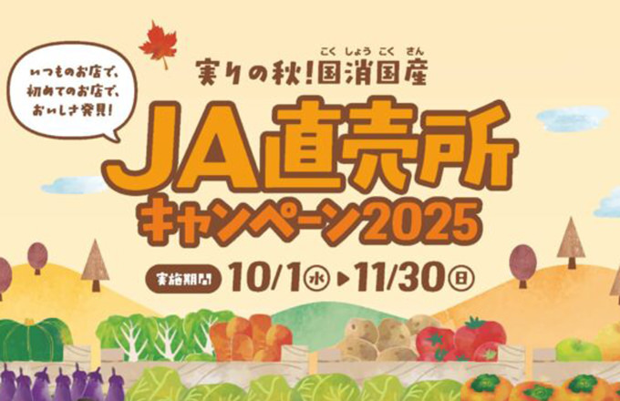 【国消国産】10月1日スタート 実りの秋!JA直売所キャンペーン2025(キャンペーンは終了しました)期間中にJA直売所を2回以上訪れてスタンプを集めて応募しよう!47都道府県とっておきの“おいしい!”農畜産物・加工品が選べる! |