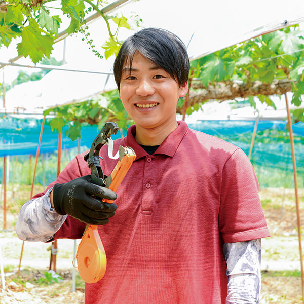 じいちゃんの畑を守るブドウの一大産地である新見市豊永地区に、広島市から父親と移り住みました。祖父が育ててきた畑を守り、受け継ぐためです。農業を始めてから3年目を迎え、「体を動かすのが好きだから自分にあっている」と確信し、周囲の農家に遅れまいと一心に作業に取り組んでいます。 |