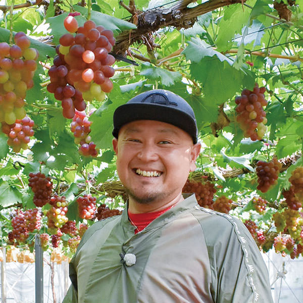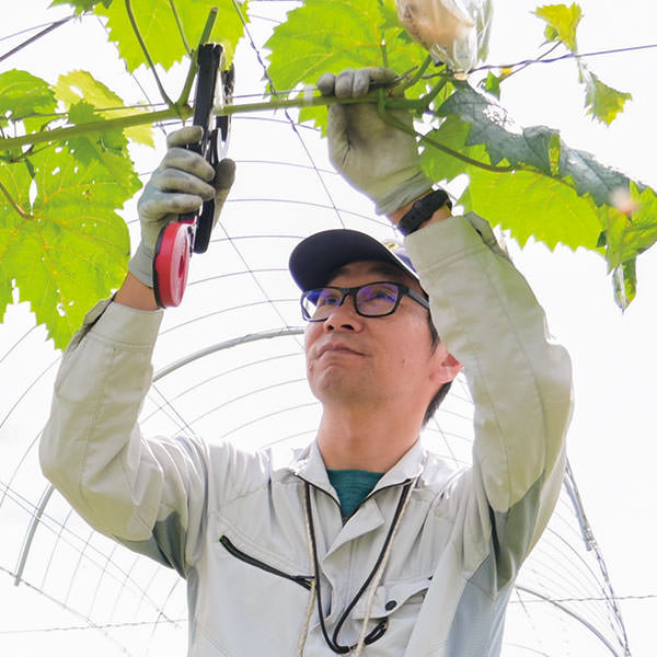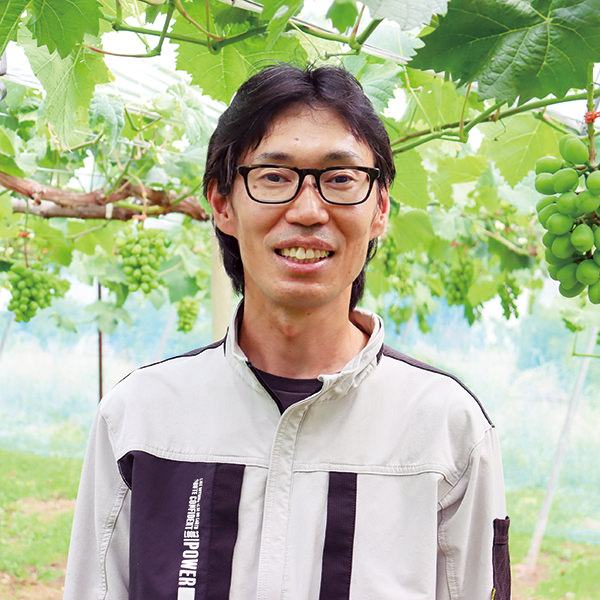 仲間とともに産地を盛り上げる笠岡市で祖父の代から続くブドウ農家の3代目となる石丸哲平さん。前職の工場勤務をしていた頃から、ブドウ栽培を手伝っていました。昨年から本格的に父から習い、シャインマスカットをはじめ、ピオーネ・オーロラブラックの栽培に取り組んでいます。 |