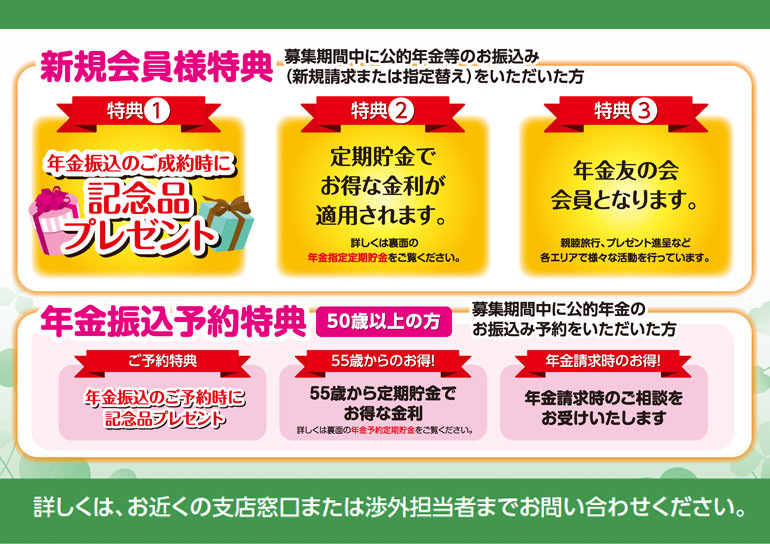 - ボーナスや年金などの大切なお金を普通貯金より有利に運用しながら、いつでも引出せるようにしておきたいときに便利です。