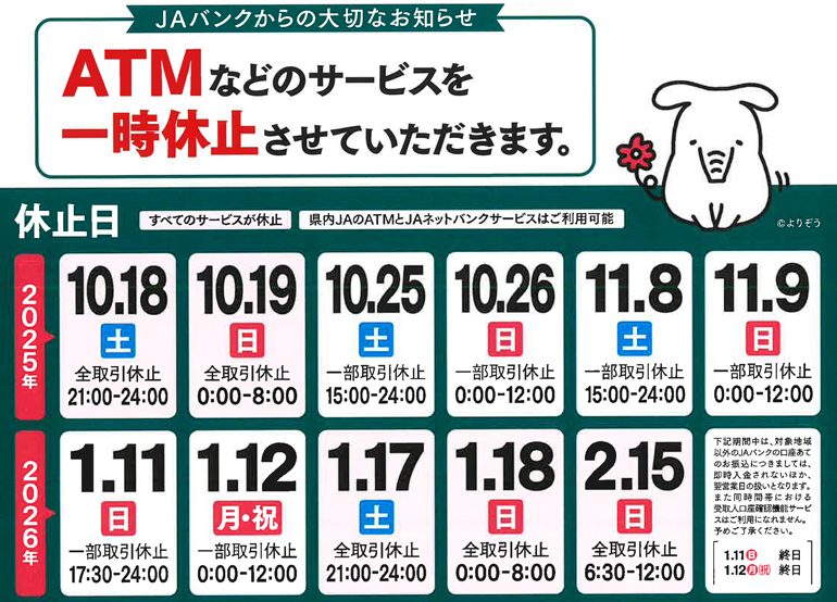 なお、キャッシュカードをご利用の場合には、全国のJAのATM・CDで無料で出し入れができます。