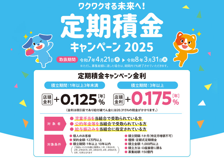 いつでも出し入れが可能で金利も普通貯金より有利です。使いみちの決まっていないお金の貯蓄にお役立てください。