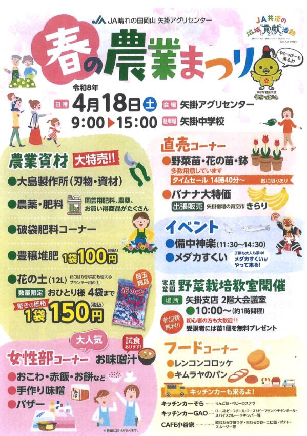 出荷者協議会手作りの焼きそばや地域ブランド「備中牛®」の牛串なども販売します
