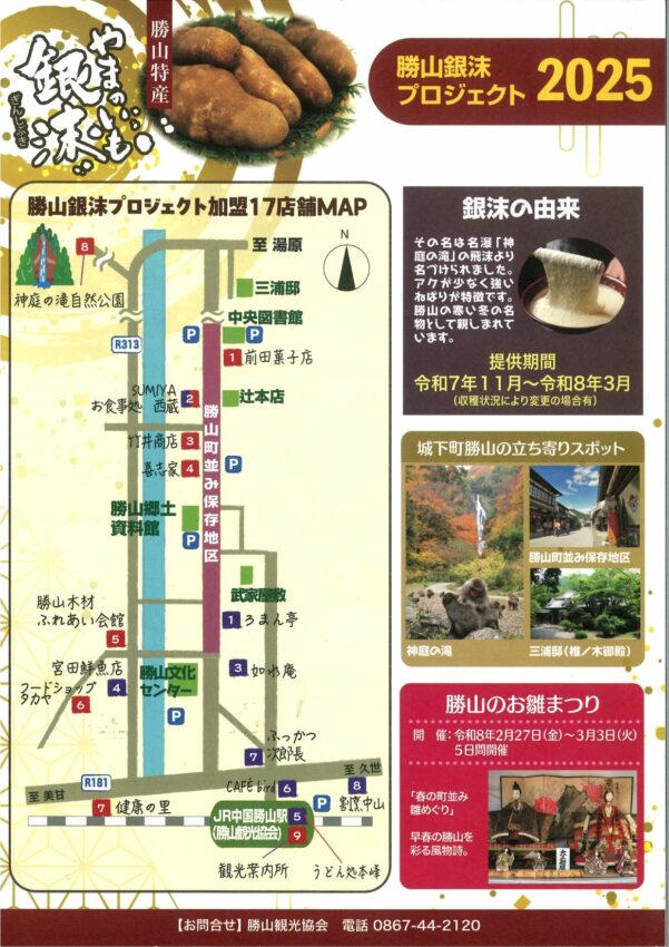 提供期間中に、勝山特産のやまのいも銀沫(ぎんしぶき)が買える販売店や銀沫を使った料理が食べられる飲食店を紹介します