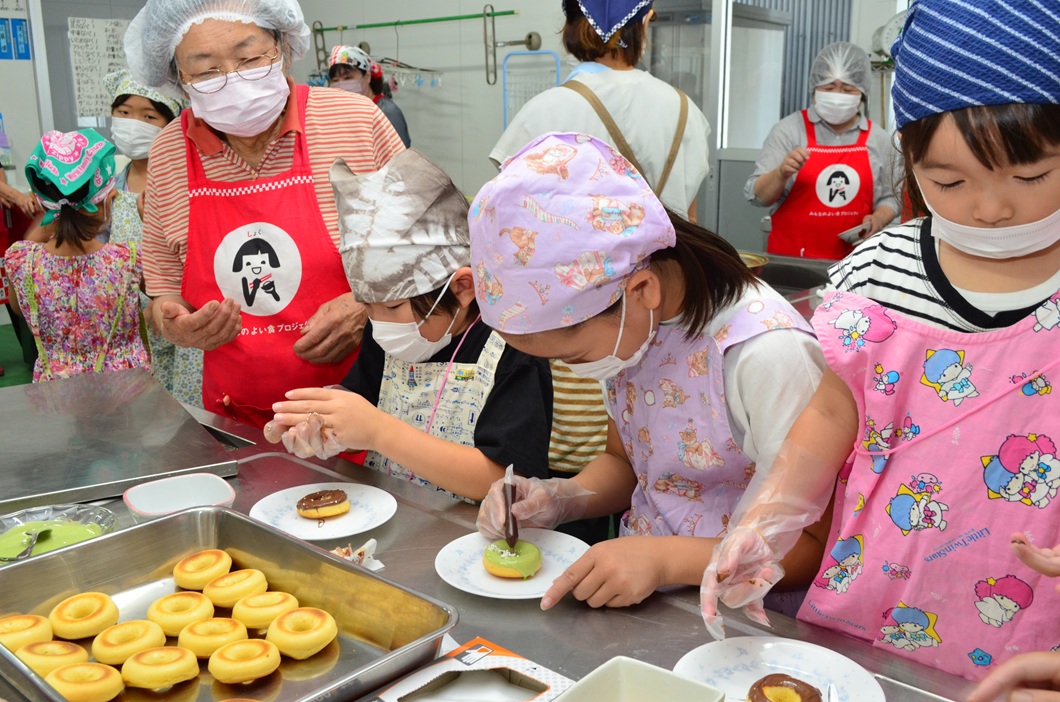 女性部岡山西地区倉敷東ブロックは9月中旬、早島町支店で「親子クッキングフェスタ」を開きました。近隣地域の親子6組と女性部員が参加し、ギョーザの皮を使ったミニピザや、たこ焼きづくりなどに挑戦。焼きドーナツにチョコレートでデコレーションをする体験では、子どもたちの笑顔があふれました。