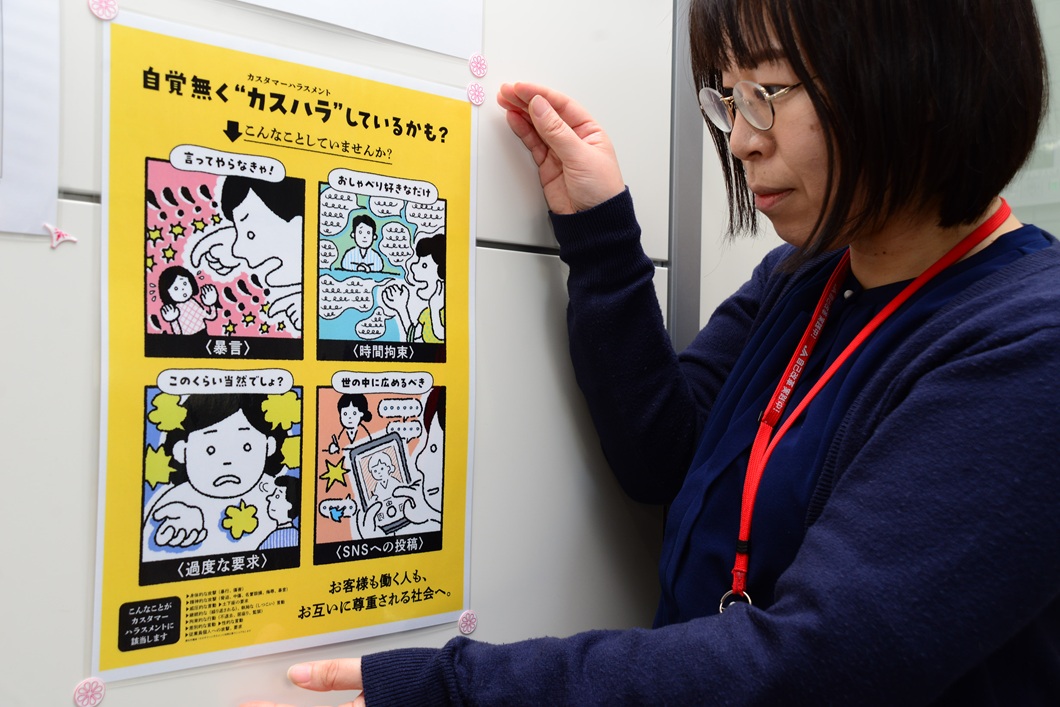JAは、組合員・利用者・取引先からの不当行為「カスタマーハラスメント」から職員を守るため、基本方針を制定しました。近年、過剰な要求や威圧的な言動などによって就業環境に及ぼす影響が懸念され、厚生労働省の対応方針の決定を受けてマニュアル作成と合わせて整備。職場内に周知するとともに、支店の店頭にポスターを掲示するなどして広く理解と協力を求め、サービス向上に努めます。