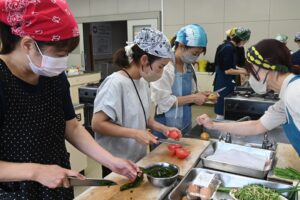 講師(右)の指導で調理する参加者