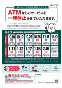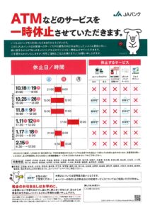 ATMやJAネットバンクなどのサービス一時休止のご案内