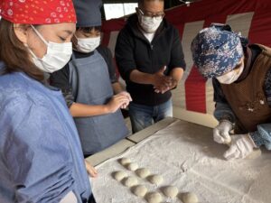 女性部岡山西地区清音支部は12月中旬、総社市の清音支店で毎年恒例の餅つきをしました。親子4組の計14人が参加。石臼ときねでつく餅つきを初めて体験する子どもや、毎年参加して今回が最後となる6年生らが張り切って取り組みました。女性部員の「よいしょ」という掛け声に合わせ、協力して餅をつきました。時折、笑い声も出る楽しい餅つきとなりました。その後、女性部員手作りのぜんざいやきな粉餅などを全員で味わいました。参加者は「良い思い出になった」「毎年餅つきが楽しみ。来年も参加したい」と笑顔で話しました。