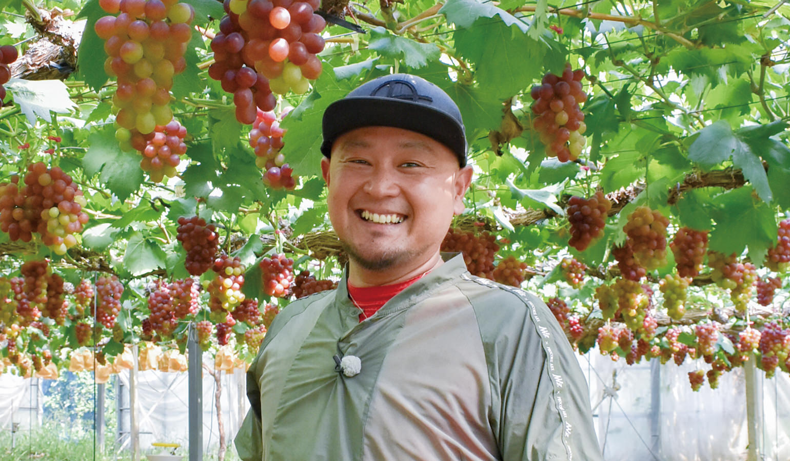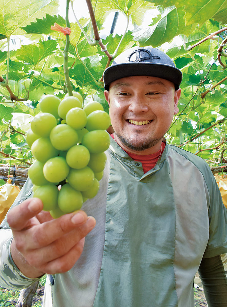 現在は約20アール、2棟のハウスで栽培をしています。1棟は親から引き継いだ田んぼを畑に変え、「シャインマスカット」を新植しました。もう1棟は地域の生産者から受け継いだもので、「瀬戸ジャイアンツ」と「マスカットビオレ」を栽培しています。今後は部会が力を入れる「ピオーネ」の導入も視野に入れます。