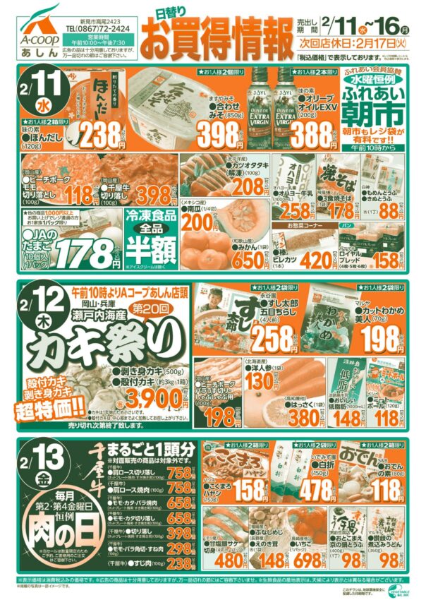 2月12日(木)はカキ祭り! 午前10時から店頭で。