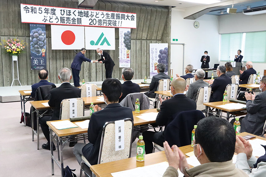 ブドウを生産する各地区では目標達成の報告や共進会などの表彰を行いました。