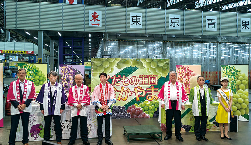 青果物の有利販売による農家所得向上対策として、モモやブドウなどの「晴れの国岡山」ブランド認知拡大のため、東京・大阪などの主要市場に組合長をはじめ常勤役員が出向き、トップセールスを行いました。