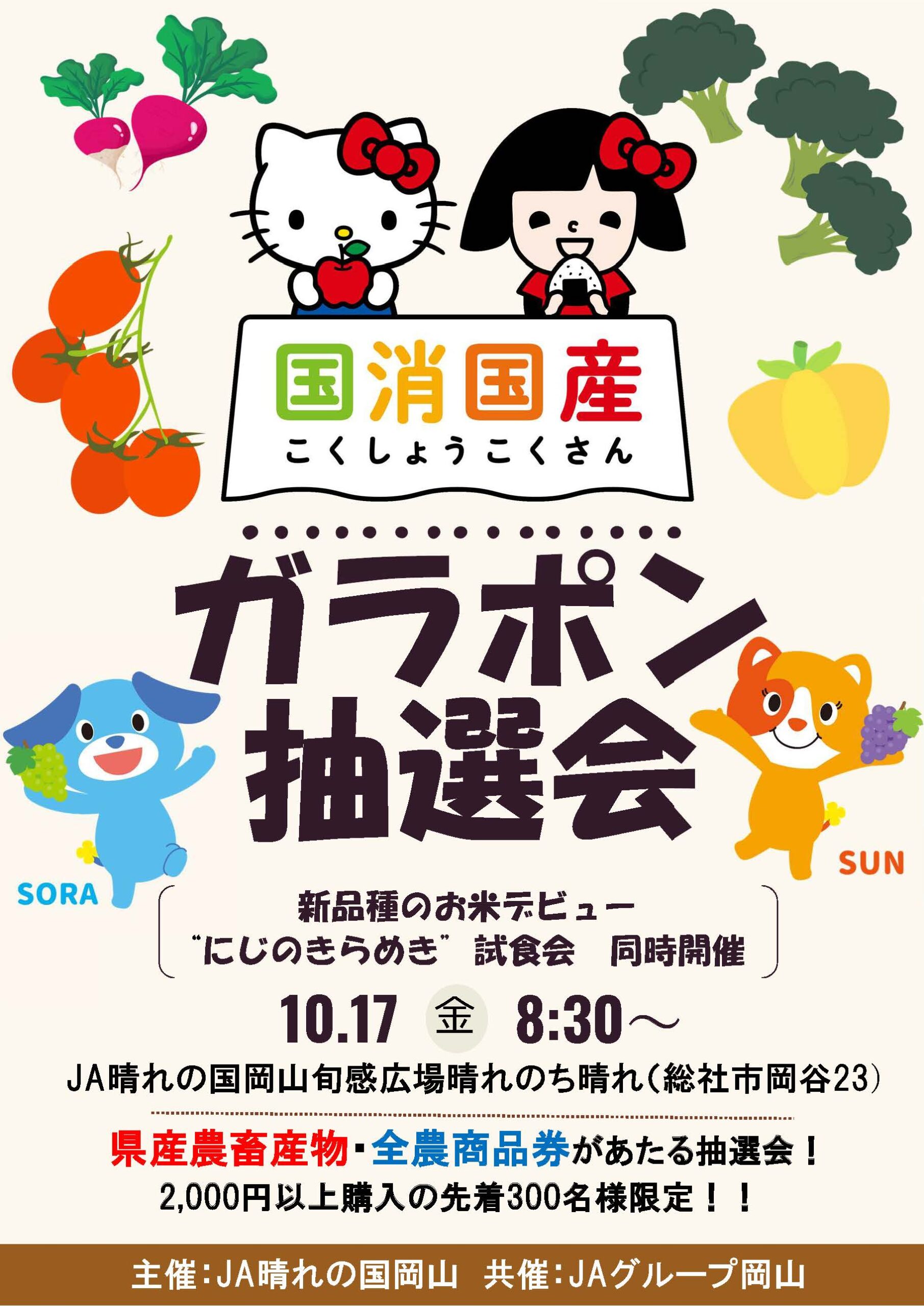 当日2,000円以上(税込)お買い上げいただいた方に抽選で県産農畜産物や全農商品券が当たる抽選会を行います。※抽選は一人一回までです。県産新米「にじのきらめき」の試食会も開催!