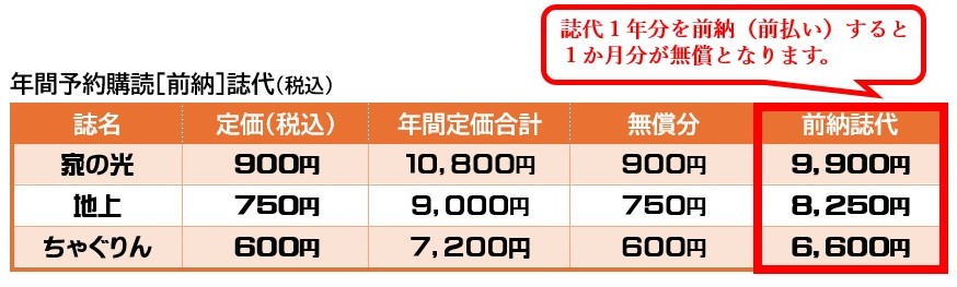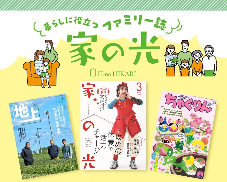 みなさまの暮らしや生活に役立つ情報誌として、「家の光」・「地上」・「ちゃぐりん」のご購読をおすすめしております。各誌面の詳しい内容については家の光ホームページをご覧ください。