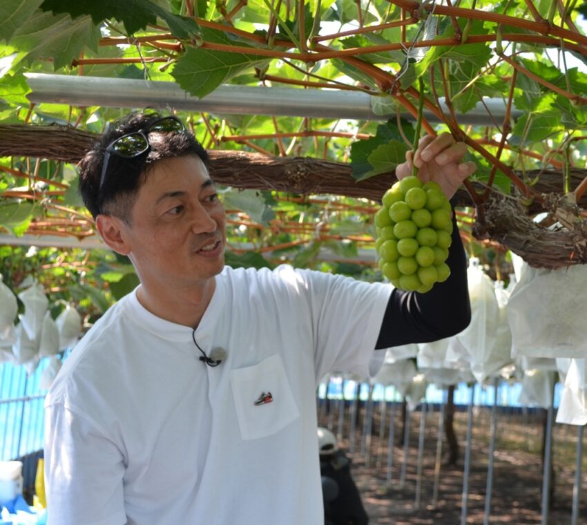 犬飼さんは子どもの頃、祖父のブドウづくりを手伝い、栽培の楽しさに魅了されました。約8年前に地元で就農し、以来「育てる過程全てが好きで楽しい」と笑顔を見せます。