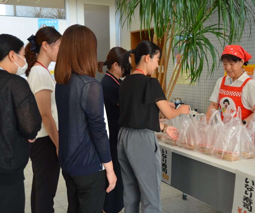 ジャンボいなりずしは、寄島支店や地元地域のイベントで販売し、長年親しまれてきた人気商品。より多くの人に知ってもらおうと、今回初めて本店で販売しました。