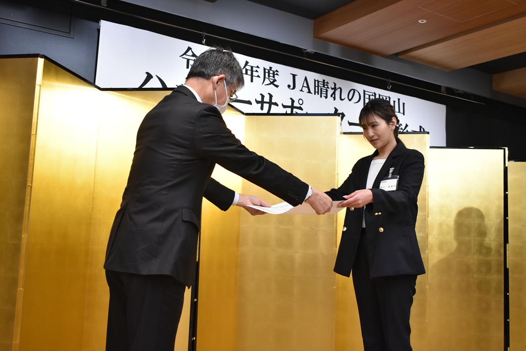 JAは2月7日、倉敷市内で2024年度JA晴れの国岡山ハッピーサポーター表彰式・交流会を開きました。支店の信用窓口担当者である「ハッピーサポーター」の日々の功績をたたえるとともに、さらなるモチベーション向上のために毎年実施。年間の個人実績の上位34人を表彰しました。