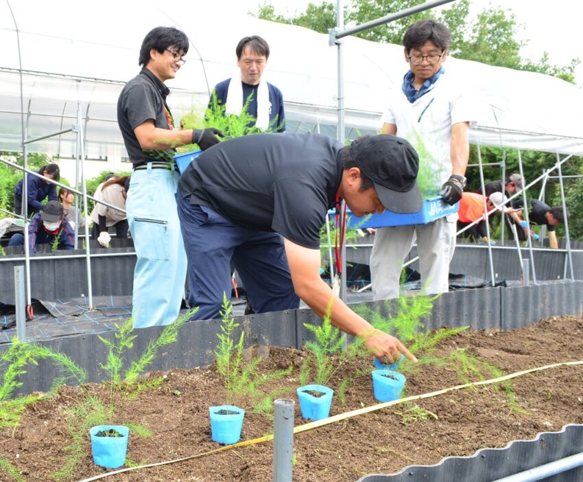 トピックス 更新日2025/11/11 営農指導員のスキルアップへ アスパラ苗の植え付け #営農指導員 アスパラガスの苗を植える営農指導員 地域の担い手に出向いて営農指導や資材提案ができる人材の育成強化を目的に、営農指導員強化研修を実施しています。9月下旬に全農おかやま職員の指導のもと、くらしき作陽大学内に設置した研修用ハウスで、アスパラガス苗を植え付ける実践研修を行いました。同大学の学生と一緒に苗を植え付けたほか、水管理や設置器具の確認、収穫までの流れを共有しました。参加した営農指導員は「今年度の研修は実践的な研修が多く、生産者と対話する際の参考にしたい」と話しました。 ≫JAの業務について詳細はこちら ≫営農相談窓口の店舗・事業所一覧はこちら ≫就農相談窓口一覧はこちら ≫組合員募集について詳細はこちら