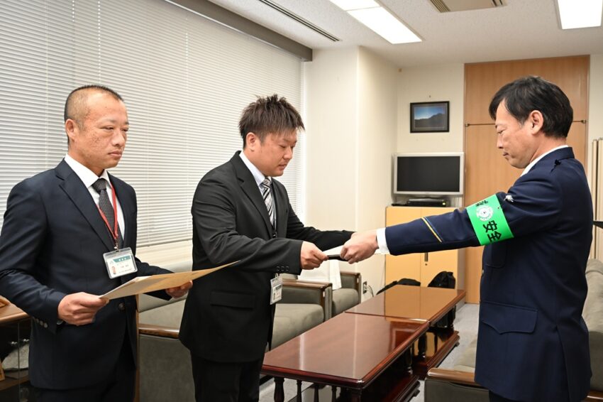 感謝状を受け取った羽場職員は「お客様の大事な財産を守れてよかった。もしJAを名乗る不審な電話があったら、最寄りのJA窓口に連絡してほしい」、加藤センター長は「今後もATMの利用者に気を配り詐欺抑止に努めたい」とそれぞれ話します。森康樹署長は「不審な電話があったら、必ず第三者に相談してほしい。今回の事例をきっかけに、市民みんなで詐欺被害を防ぐ動きが広まれば」と呼びかけました。