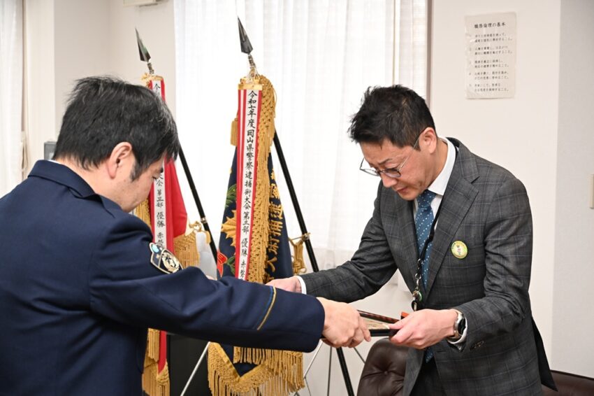 特殊詐欺の被害を未然に防いだとして、赤磐市にある熊山支店は12月中旬、赤磐警察署から感謝状を受けました。支店を代表し、幡上幸司支店長が増田直也署長から感謝状を受け取りました。