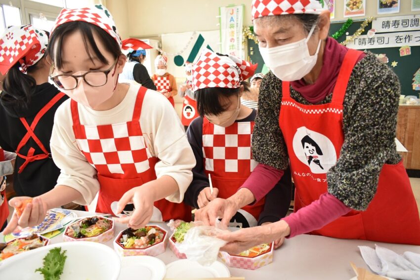 地域とのつながりも大切に、学校や行政と連携を取りながら活動しており、食農教育の一環で小学生などを対象とした「晴寿司」の料理教室も開いています。岡山東地区では、「料理教室に参加した孫から教わり一緒に作った」と、地域の方からうれしい言葉が届くなど、子どもたちから地域にも広がっています。