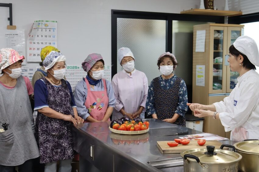 矢掛アグリセンターは7月下旬、地元産のイタリア野菜を使った料理教室を開きました。地域の飲食店・給食センター職員・JA女性部員など約20人が参加しました。イタリア家庭料理研究家の山中律子さんを講師に、「ボンジョールノトマト」「サン・マルツァーノ」のトマトソースやそれを使ったイタリアの家庭料理を習いました。山中さんは、「地域の人たちが家庭料理として使うことで地域食として広がり、矢掛町産イタリア野菜の価値をあげていくことができる」と説明。参加した女性部員は「気軽に使えることを知った。まずはトマトソースを作ってみたい」と笑顔を見せました。