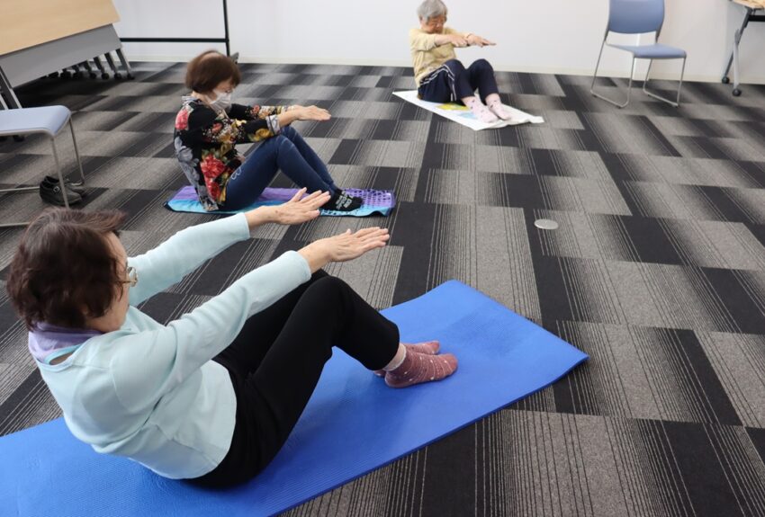 月に2回開いている体操教室は、ラジオ体操から始まり、音楽に合わせてストレッチやダンスをしています。