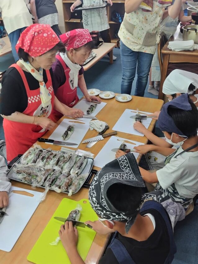 トピックス 更新日2025/08/04 児童とお酢で料理/女性部岡山西地区里庄支部 #女性部 #岡山西地区 #料理教室 #農と食 #里庄支部 #里庄西児童クラブ 児童に教える部員㊧ 女性部岡山西地区里庄支部は8月、里庄町で里庄西児童クラブと、夏ばて対策としてお酢を使った料理教室を開きました。児童60人と女性部14人が参加。児童は部員の指導を聞きながら、ナスの棒寿司(ずし)、キュウリの韓国風酢の物、中華風スープの3品、170人分を協力しながら調理しました。 ≫女性部について詳しくはこちら ≫JAの女性部「地元の魅力 郷土料理 若い世代につなげたい想い」