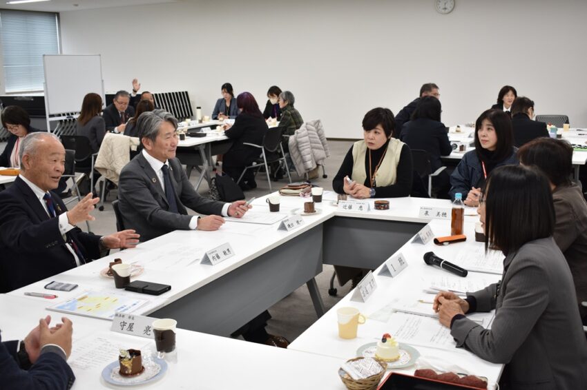 女性部の部員数は5071人。年々減少し、部員増が課題となっています。その状況を踏まえ、意見交換では「地域社会への貢献を強化するには」「女性部員を増やす方法」の二つをテーマに、4班に分かれて議論しました。