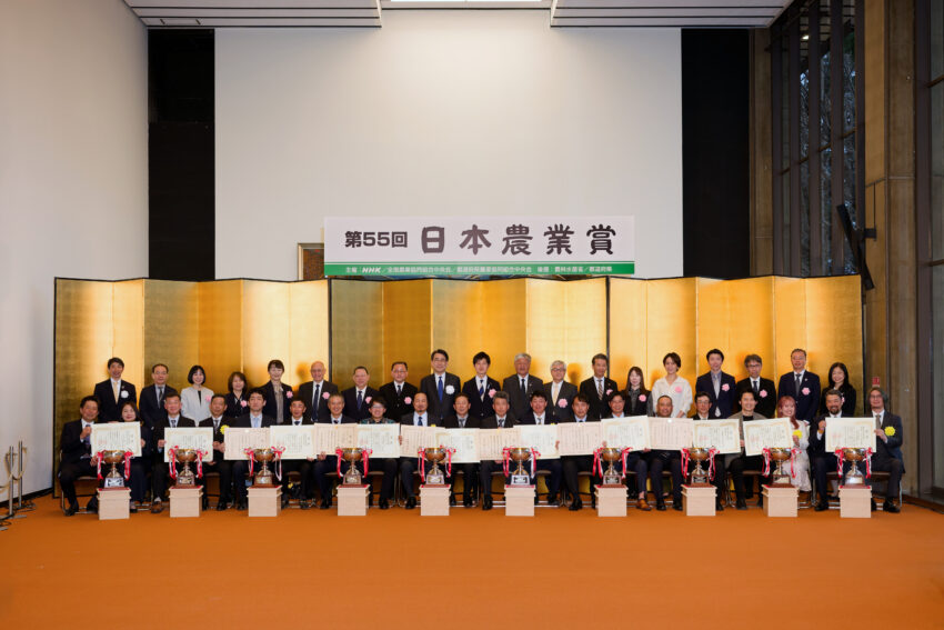 JA全中・JA都道府県中央会・NHKが主催の、「第55回日本農業賞」集団組織の部で、総社市の吉備路もも出荷組合が大賞に輝き、2026年3月7日に東京都のNHKホールで表彰式が開かれました。