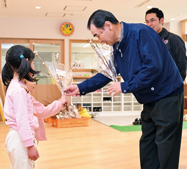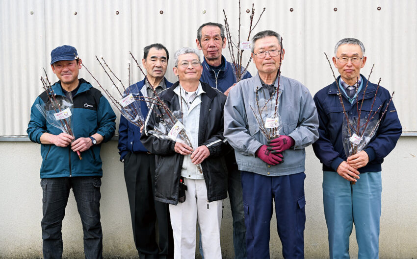 小規模農家を中心に構成し、「清水白桃」「白鳳」「おかやま夢白桃」などを栽培しています。仲間と協力して声をかけ合い相談できる体制を整え、産地の維持・拡大に努めています。特産を知ってもらおうと、2016年からひな祭りに合わせて市内こども園などにモモの花を配布する取り組みを行い、地域とのつながりを大切にしています。