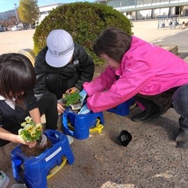 花の植え付け指導/女性部津山地区中支部女性部津山地区中支部は11月25日、津山市立西小学校を訪れ、花の植え付けを指導しました。 |