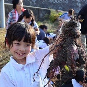 芋掘り形いろいろ/里庄支店里庄支店は10月下旬、里庄町の小学校放課後児童クラブ2年生とともに、支店職員が管理するほ場で5月下旬に植えたサツマイモを収穫しました。 |