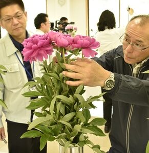 最優秀賞に荒木一郎さん びほく地域芍薬共進会びほく花木生産部会は5月中旬、特産芍薬の出荷最盛期に合わせ、高梁市でびほく地域芍薬共進会を開きました。 |