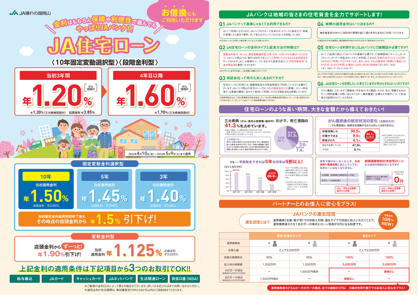 - 店頭金利ならびに適用金利(当初お借入時)は2026年4月10日(金)現在のもので、毎月見直します。(金融情勢等の変化によっては、期間中に見直しさせていただく場合もあります。)
