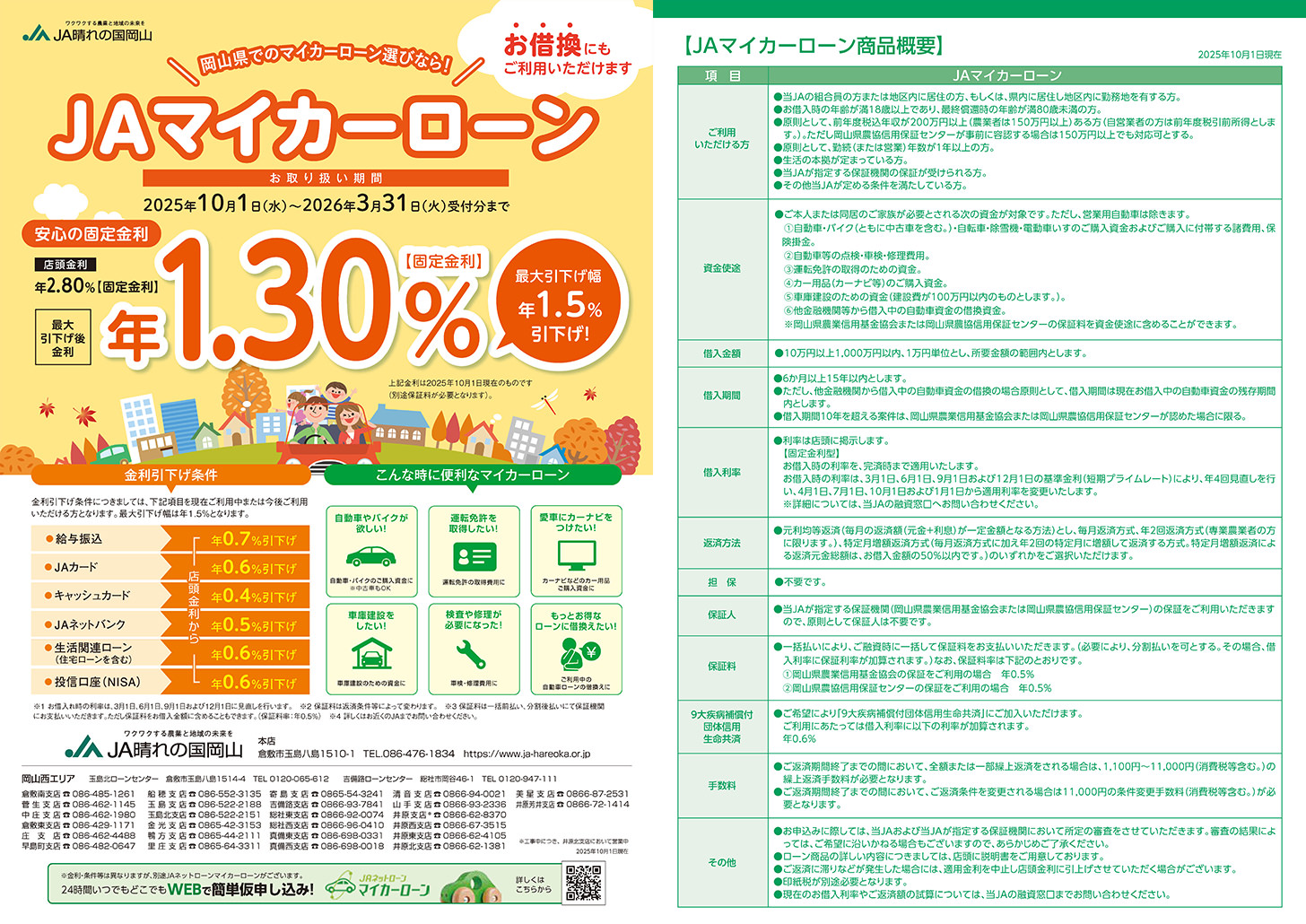 JA晴れの国岡山 本店 信用部 〒713-8113 岡山県倉敷市玉島八島1510-1 TEL 086-476-1834 |