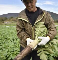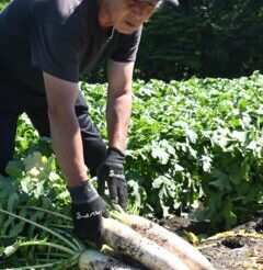 また、冷涼な気候の中で育つので、病害虫が発生しにくく、最低限の防除のみで安全安心なダイコンとなります。緑肥などをたっぷり施用しています。