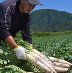 管内には、蒜山高原一帯で育てられる「ひるぜん大根」と、新見市草間地区のカルスト台地で育てられる「カルスト大根」という、二つのブランドダイコンがあります。どちらも高原の寒暖差と「黒ボク」と呼ばれる肥沃な土壌により、おいしいダイコンが育ちます。