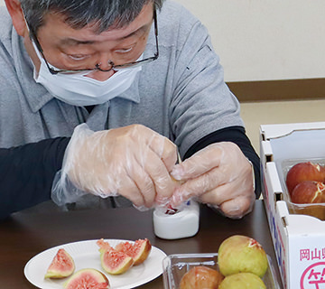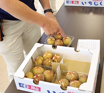 備前市は西洋イチジク「桝井ドーフィン」の岡山でも数少ない産地の一つで、地域の特産品になっています。果皮は赤褐色で、ほどよい甘みとさっぱりした風味が特徴です。