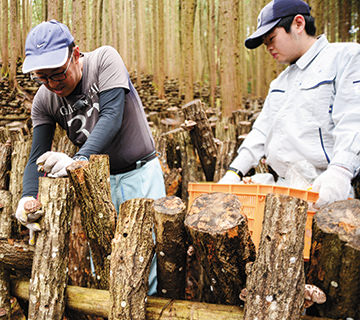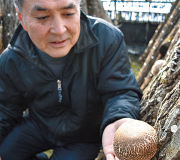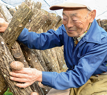 県中北部の森林資源を活かした原木シイタケ。自然の気象条件を利用して、じっくり時間をかけて育てます。味・香り・風味に優れます。